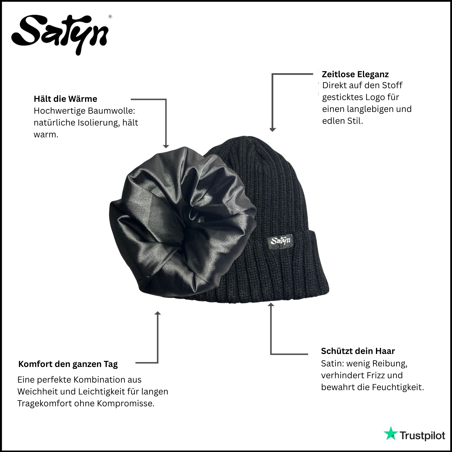 Satin schützt dein Haar, verhindert Frizz, bewahrt die Feuchtigkeit und sorgt für ein einzigartig angenehmes Tragegefühl.
