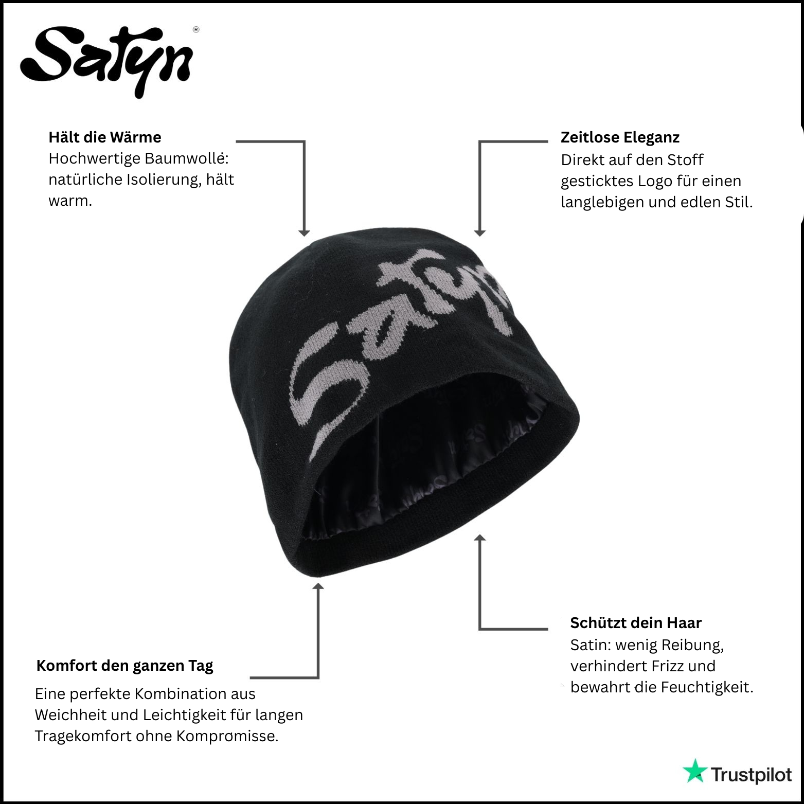 Satin schützt dein Haar, verhindert Frizz, bewahrt die Feuchtigkeit und sorgt für ein einzigartig angenehmes Tragegefühl.